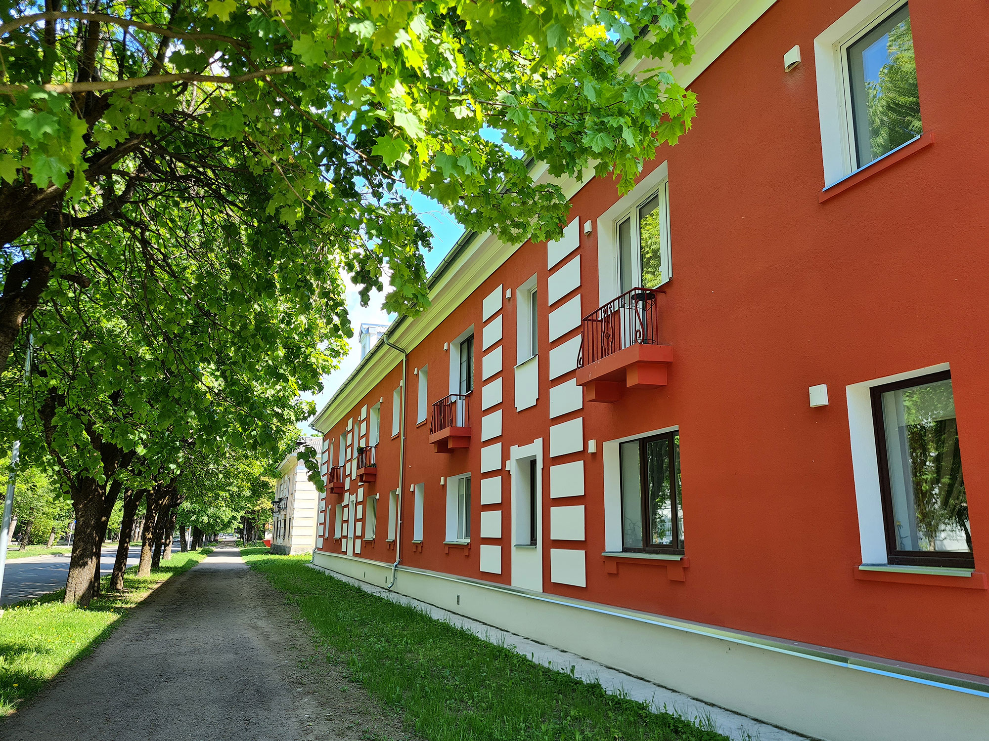 Планировку этого полностью реализованного сталинского жилого квартала разработал еще в 1949 году архитектор Антон Соанс. Это был первый новый комплекс зданий, построенный в районе Кренгольма после войны.